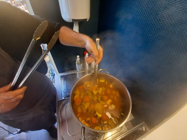Le fameux Couscous de Patrick est préparé avec: ( selon la saison ) carottes, navets, céleri-branche, fenouil, courgettes, pois-chiches..., poulet, merguez, boulettes de bœuf et de diverses épices dont le secret est très très bien gardé par le chef lui même, bien-sûr il est servit avec sa semoule toujours servie à part.